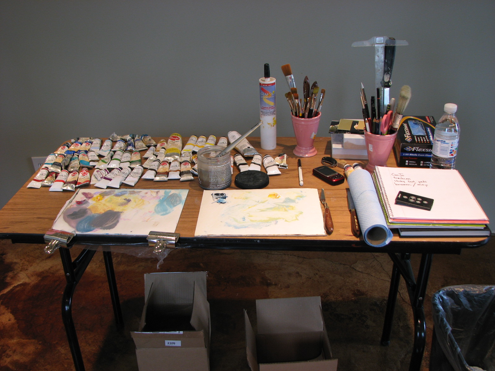 It's been weeks since I've worked on Once but I needed a bigger space to be able to work on it productively, which is why today is a special day. It was so incredibly nice to have a large space to work in, one in which I didn't have to worry about hitting my head on the low sloping attic ceilings. Today has been a long time in coming. I'm looking forward to having a real studio space in which to produce paintings.